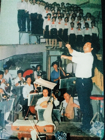 海口琼剧团乐队在海口戏院表演。王玉洁 翻拍