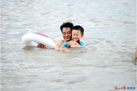 游客黄先生:我来了海口才听说有“洗龙水”这项习俗,很有特色。而且这儿的海水湛蓝,环境优美,孩子玩得特别开心,安全保障工作也到位,有机会的话我们明年还要到这里来。