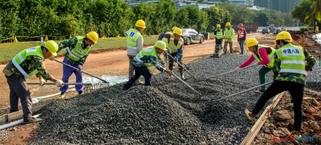 “目前,‘三道’的骨架已经全面形成,透水混凝土的基层已铺好,我们正在加快面层和透水路面漆的施工,确保如期露出‘真容’。”施工单位中建八局项目总工许声盖介绍,项目部坚持超常规推进,高峰期投入300名工人、30余台核心作业机械,是原定计划的两倍,并合理延长施工时间,优化施工组织和工序,多管齐下保障进度。目前,总工程进度超过50%。