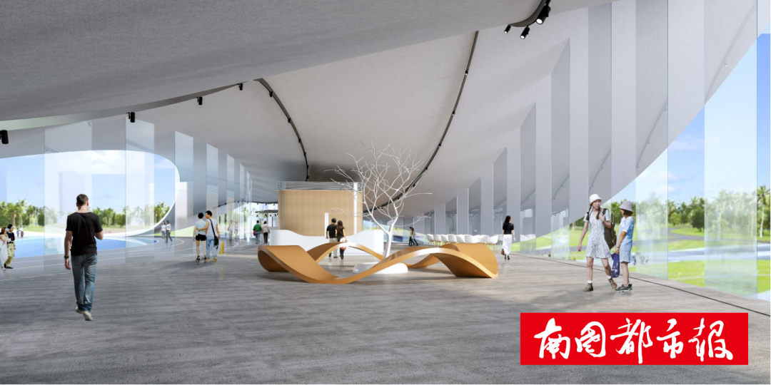 6号驿站是大型国际公共艺术项目“海口海边的驿站”的代表性项目之一。“6号驿站最大的特点是投入使用后,到访者可以沿着起伏的屋面,一览滨海迷人风景。”林捷向记者介绍,该项目是海甸岛首个滨海高标准驿站,建筑由延绵起伏的圆环屋顶构成,在城市与海之间创造出一片“天空之山”。坚固的构造隐于灵动的建筑曲线中,轻柔如云朵,变幻如天空。总建筑面积3606.67平方米,设置潮人文化空间、驿站便民服务、咖啡厅、运动健身、信息咨询、特色主题空间等功能。