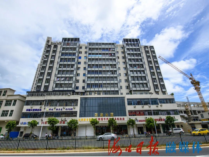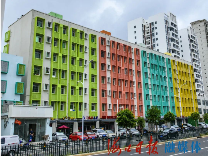 破败的外墙经过整体改造,披上崭新的“外衣”;楼宇的防水、隔热层等重新设计施工,破解多年的渗水难题;生锈残破的窗户、防盗网,换上坚固耐用的新产品,规整后的空调机柜、广告招牌层次鲜明,整洁美观......在海口文明东路,楼龄超过20年的文龙大厦新貌让人眼前一亮。