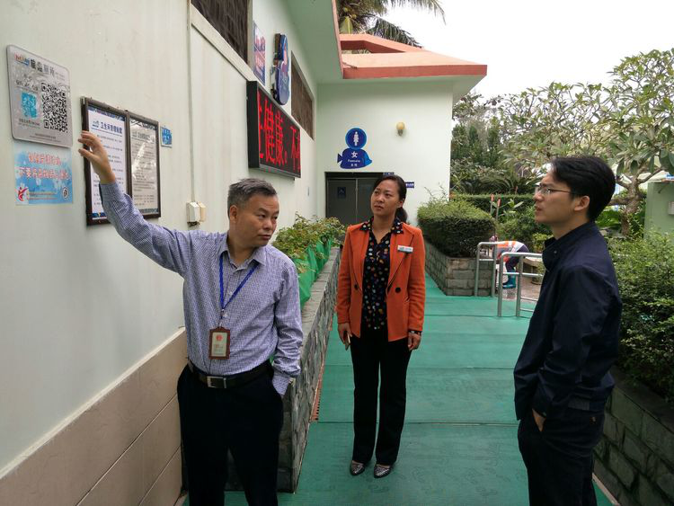 2017年1月5日,国家旅游局一行到海口假日海滩旅游区考察景区安全生产、旅游服务和旅游公厕工作和项目,海口市旅游发展委员会副主任蒋祖华、海滩公司总经理金艳陪同检查。