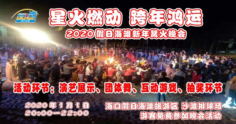 2020年1月1日晚上8时整,“星火燃动 跨年鸿运”2020年假日海滩新年篝火晚会在假日海滩景区准时释放“火爆”激情。