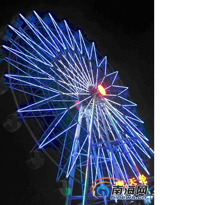 巨大的摩天轮尤其引人注目,点亮跨年狂欢夜。(南海网实习记者 黄良策摄)