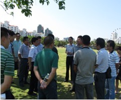 在双拥雕塑项目建设选址—白沙门公园阳光草坪现场,市双拥办吴胜刚主任就双拥雕塑项目选址和规划设计向调研小组汇报了基本情况。海旅集团董事长、党委书记顾建在现场作了补充发言,认为该项目可结合海南本地红色革命故事和有关国防教育基地对双拥雕塑公园的要求进行雕塑设计。最后,朱永盛副市长要求市双拥办加快项目设计工作,确保项目顺利进行。