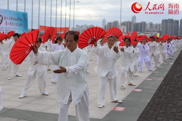 8月3日,由海口市旅游和文化广电体育局主办的2019海口市暑假太极拳培训暨大展演公益活动在海口举行。经过为期一个月紧锣密鼓地排练,600余名太极拳拳手首登国家帆船基地公共码头进行公益展演,旨在弘扬五千年优秀中华民族太极文化,推动海口全民健身运动发展。