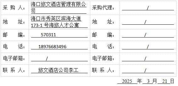 4.1有意向的供应商可从 2025 年 3 月21日 9:00 时起至 2025 年 3 月 28日 9:00 时止(北京时间,下同),通过 海口旅文酒店管理有限公司 进行报名。