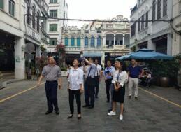 2018年10月19日下午,商务部办公厅巡视员杨正位、商务部办公厅处长黄名海一行到骑楼老街开展调研,调研组先后考察了海口南洋骑楼老街风貌展示馆、中山路步行街、天后宫、自在咖啡等地,详细了解海口骑楼老街的历史沿革、建筑修缮保护、整体配套设施改造和业态调整的具体做法。海南省商务厅办公室主任林海云、海口市商务局总经济师陈量子等陪同调研,骑楼公司总经理方骅及相关工作人员陪同。